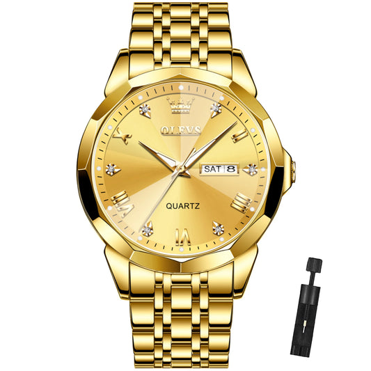 Watches for Men, Mens Watches Gifts for Men Chronograph Analog Quartz Luxury Casual Classic Diamond Waterproof Luminous Gold Stainless Steel Reloj Para Hombre