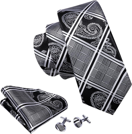 Men Ties Paisley Woven Silk Necktie Set with Pocket Suqare Cufflinks Formal