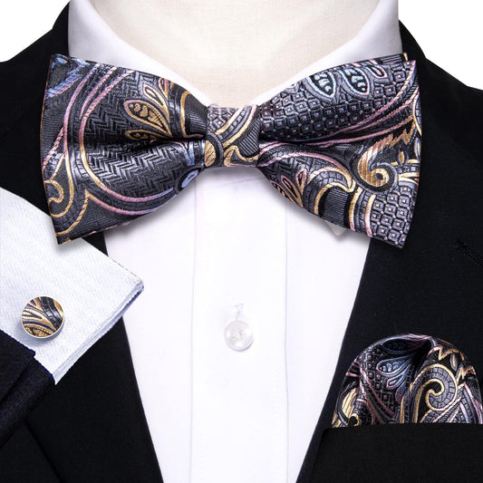 Paisley Striped Bow Tie for Men Silk Pre-Tied Bowtie Pocket Square Cufflinks Set Formal Wedding Party Prom