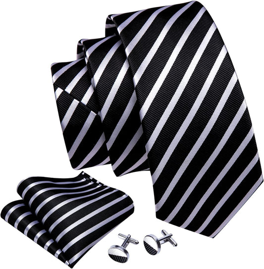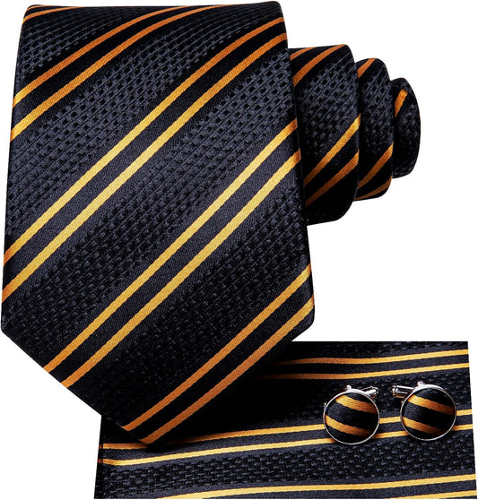Stripe Men Ties Set Classic WOVEN Necktie with Handkerchief Cufflinks Formal
