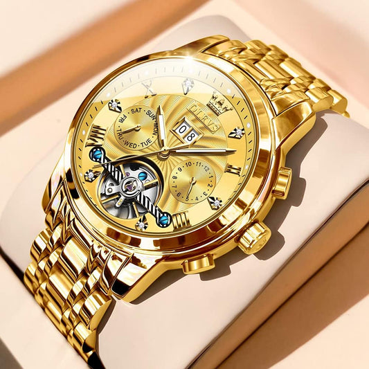 Automatic Gold Watches for Men Luxury Classic Stainless Steel Calendar Luminous Waterproof Watches for Men