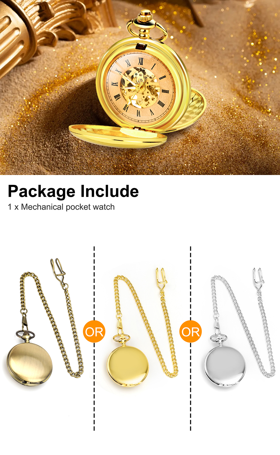 Product Description Men's Mechanical Retro Pocket Watch with Chain Retro Roman Numerals 3 Colors.Product Feature