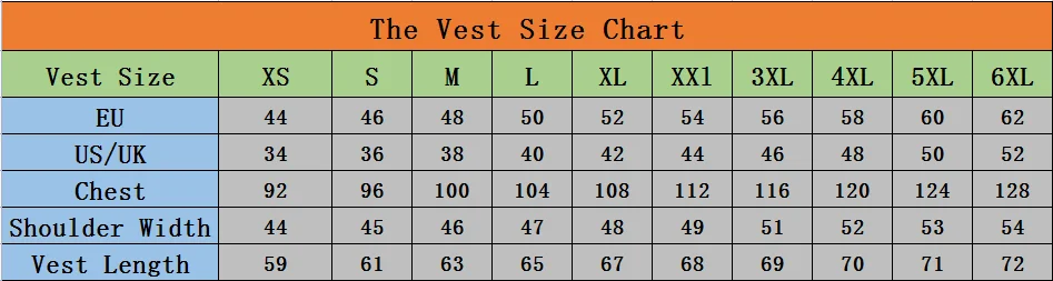 1.The standard size chart only means finished vest size, not body measurements.
